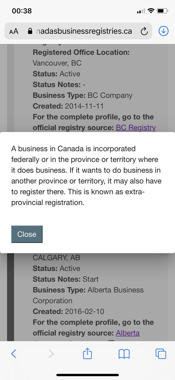 Na dann zeigt mir mal alle Registrierungen in allen Provinzen und Territorien, damit sie dort ihr Geschäft laut dem Spruch oben tätigen dürfen: