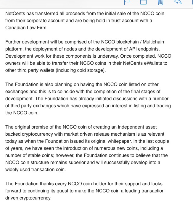 „…und freut sich darauf, die NCCO-Münze weiterhin zu einer führenden transaktionsorientierten Kryptowährung zu machen…“