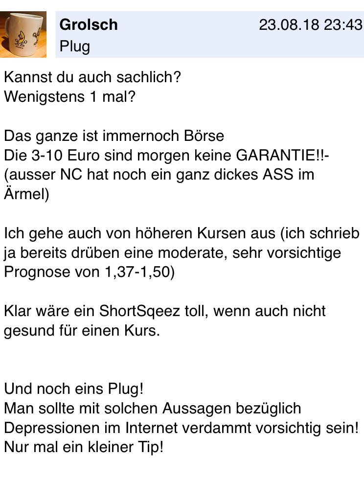 Ich bin stark in TenX investiert und wenn ich die aktuellen NC News noch und nochmal lese, sehe ich NC entweder als starken Wettbewerber von NC oder an dem Gerücht, dass TenX kurz vor dem großen Durchbruch steht ist etwas dran.