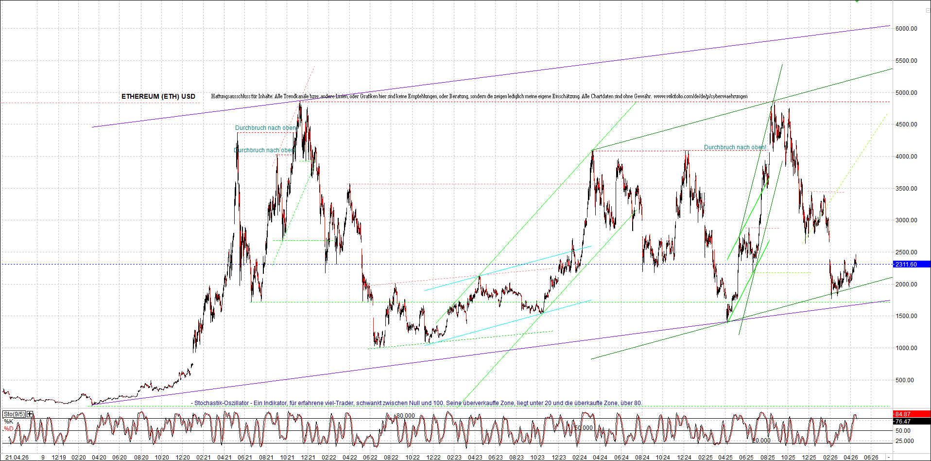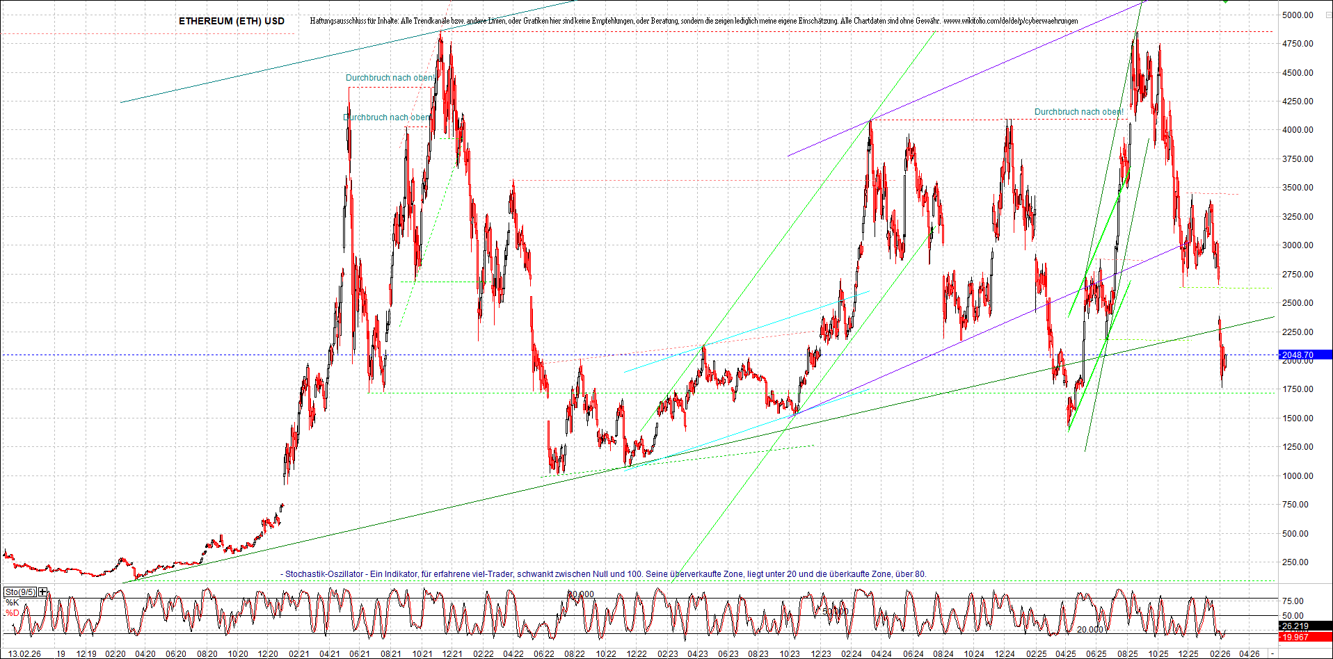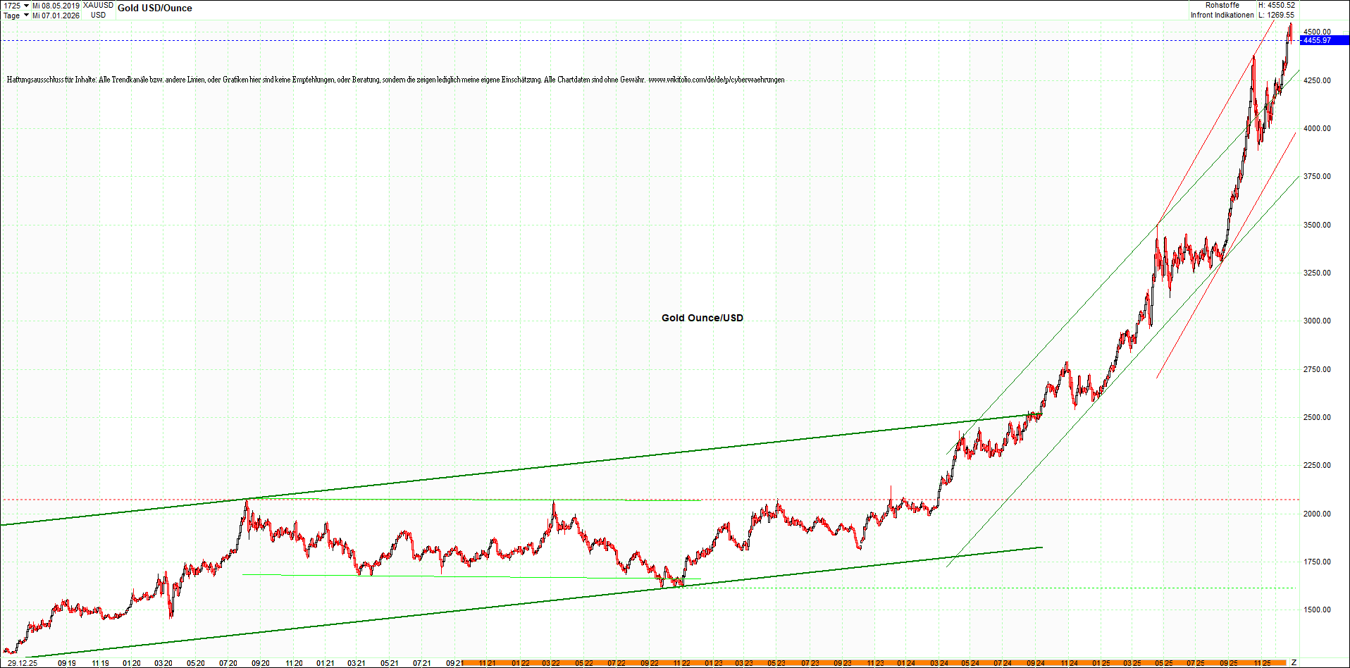 Mehr über die 7 wikifolio-Endlos-Zertifikate gibt es hier. Aber bitte da nicht erschrecken wegen den charts, weil die wikifolios sollten die original-performance so getreu nachbilden wie möglich, aber die charts bei wikifolio zeigen leider nur ein kleines Zeitfenster. Deswegen habe ich hier die entsprechenden langfristigen original-performance-charts reingestellt. Die kann ich auch gerne ab und zu aktualisieren. Die Trendkanäle bzw. andere Linien, oder Grafiken in diesem thread zeigen aber ausschließlich meine eigene Meinung und sind keine Empfehlungen, oder Beratung.