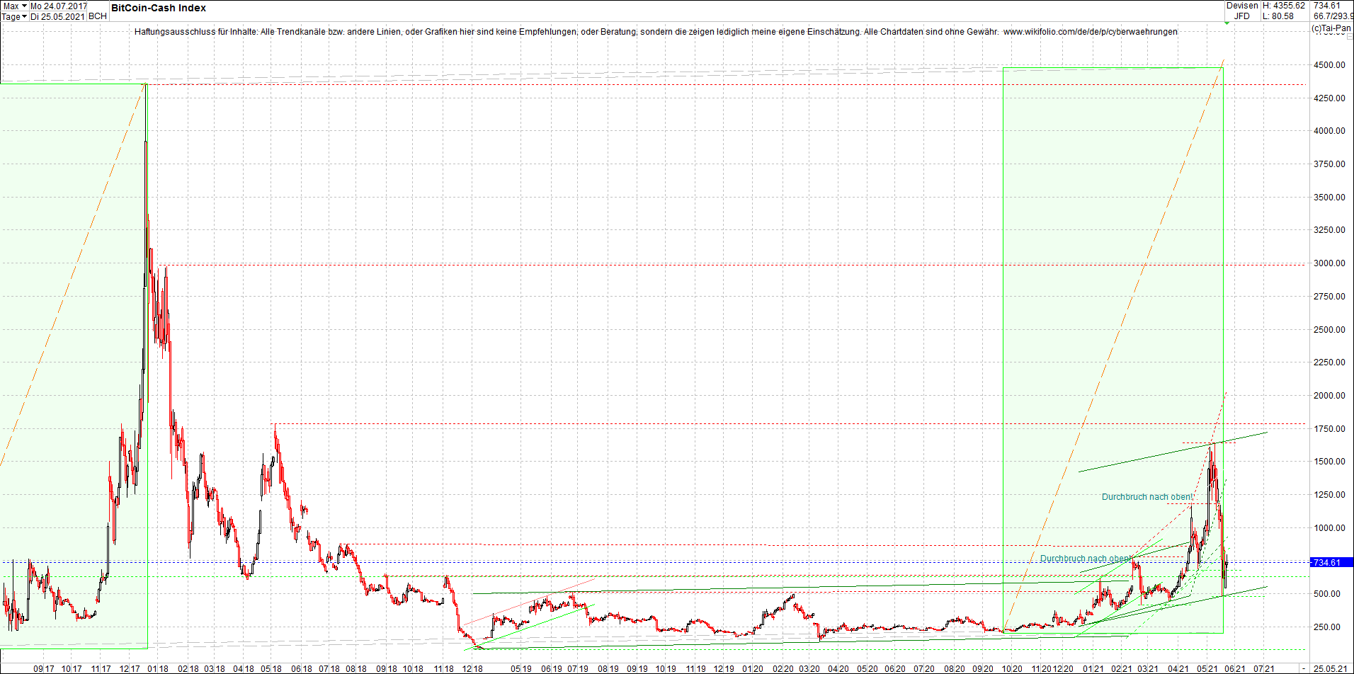 Bitcoin Cash (BCH) Chart heute am Morgen. Anbei das Zertifikat, jetzt mit Bitcoin Cash (BCH), bekannt als: Endlos-Zertifikat bezogen auf LUS Wikifolio-Index "Performance von Kryptowaehrung".