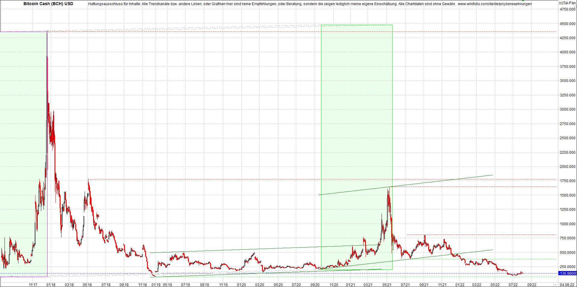 Meiner Meinung nach, Bitcoin Cash passt gut zusammen mit Litecoin ins Depot und mit ordentlichem Kurs Entwicklungspotenzial von Vergangenheit, charttechnisch gesehen, könnte BCH die Performance von LTC, sogar um einiges übertreffen.