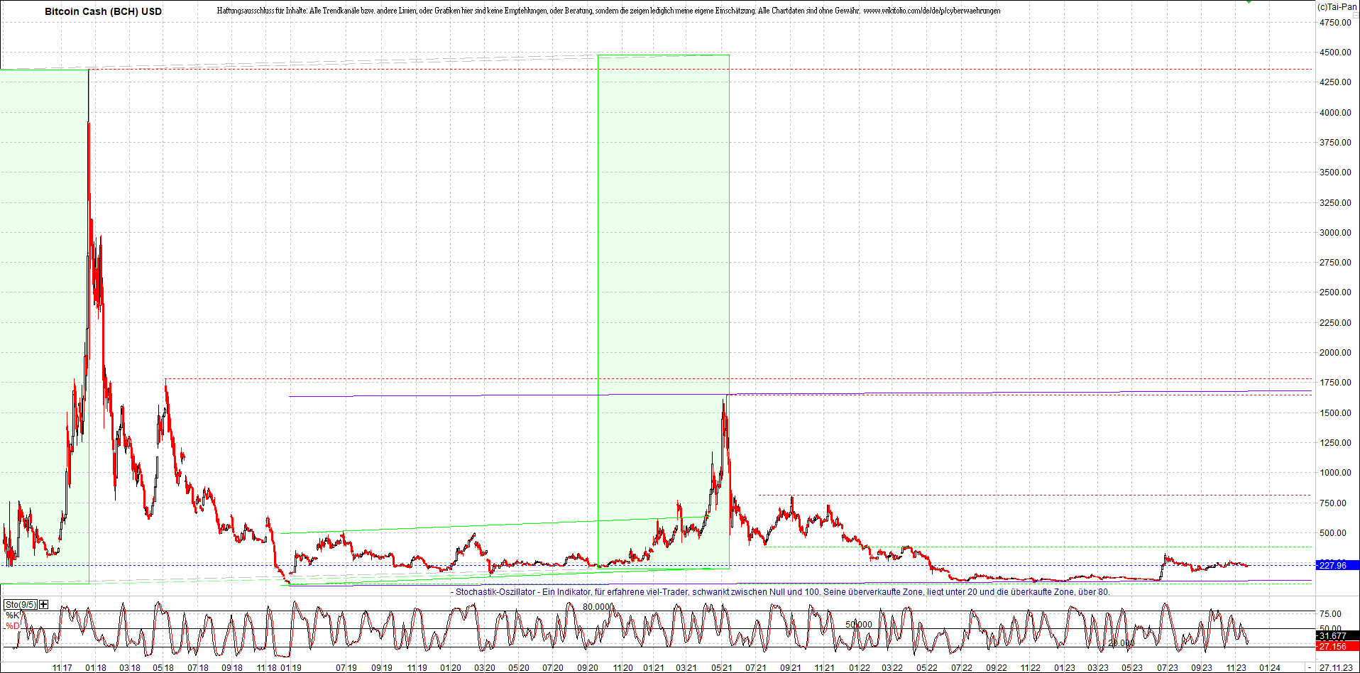 BITCOIN CASH (BCH) Chart. Oben das Zertifikat.