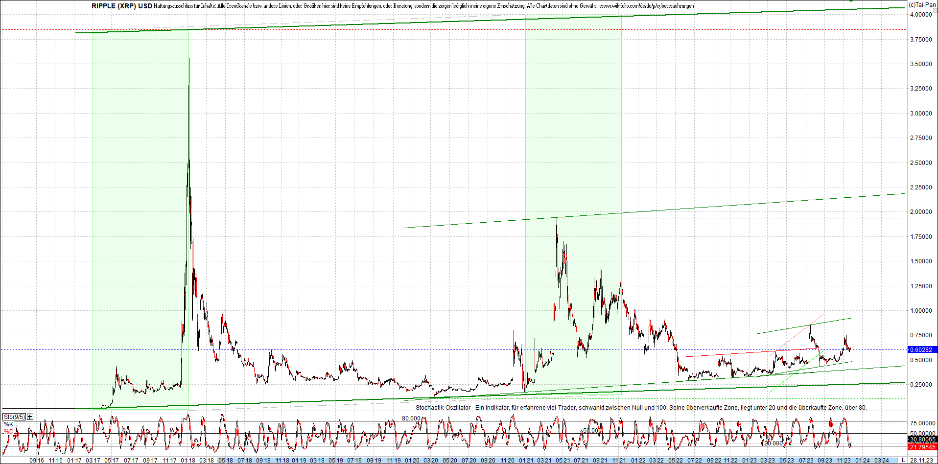 RIPPLE / XRP am Morgen. Oben Ripplezertifikat.