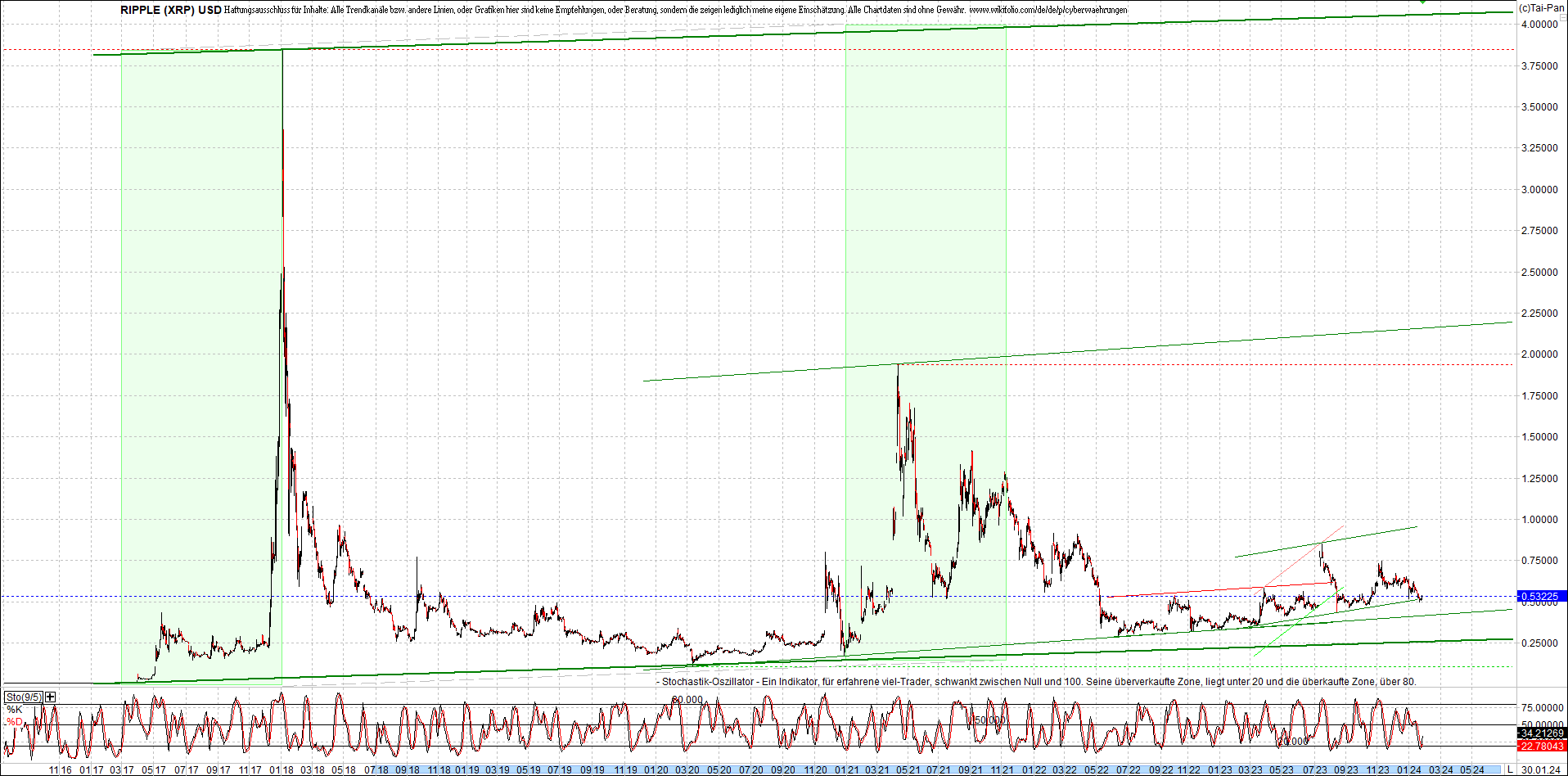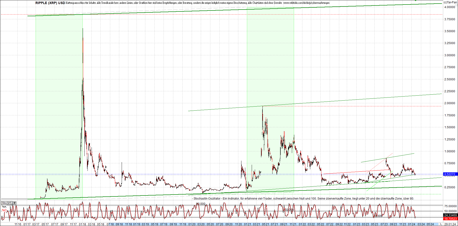 RIPPLE / XRP am Morgen. Oben Ripplezertifikat.
