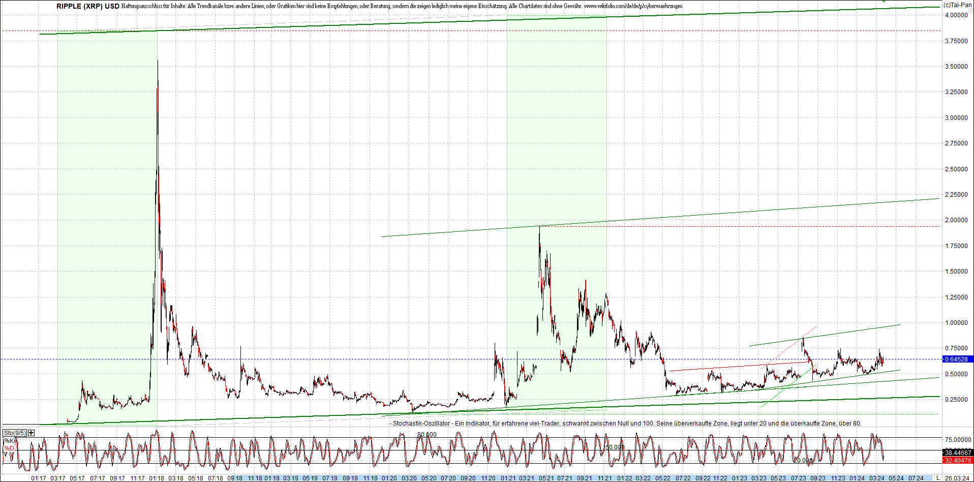RIPPLE / XRP am Morgen. Oben Ripplezertifikat.