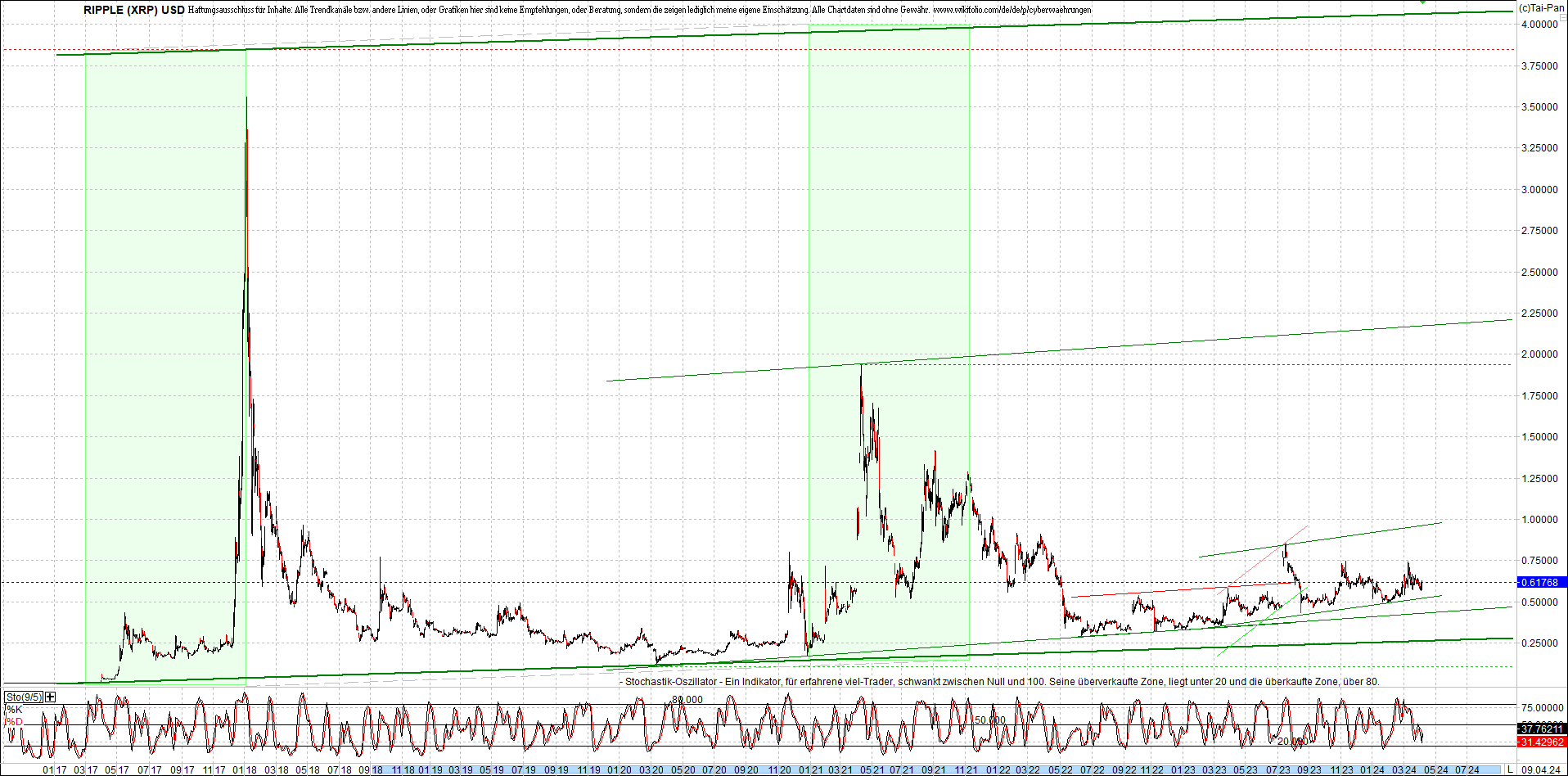 RIPPLE / XRP am Morgen. Oben Ripplezertifikat.