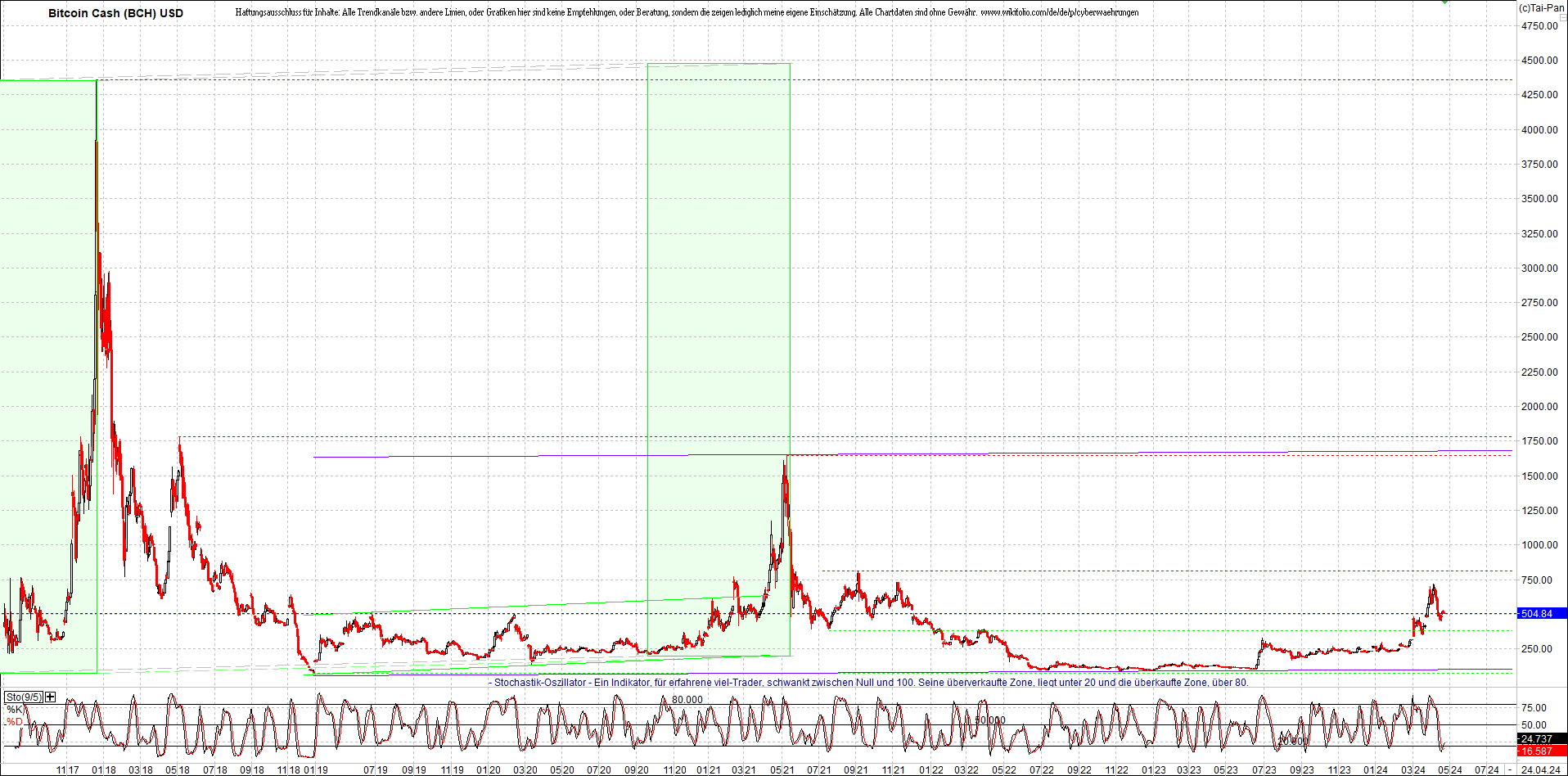 BITCOIN CASH (BCH) Chart. Oben das Zertifikat.