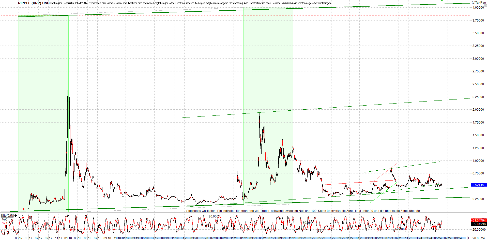 RIPPLE / XRP am Morgen. Oben Ripplezertifikat.