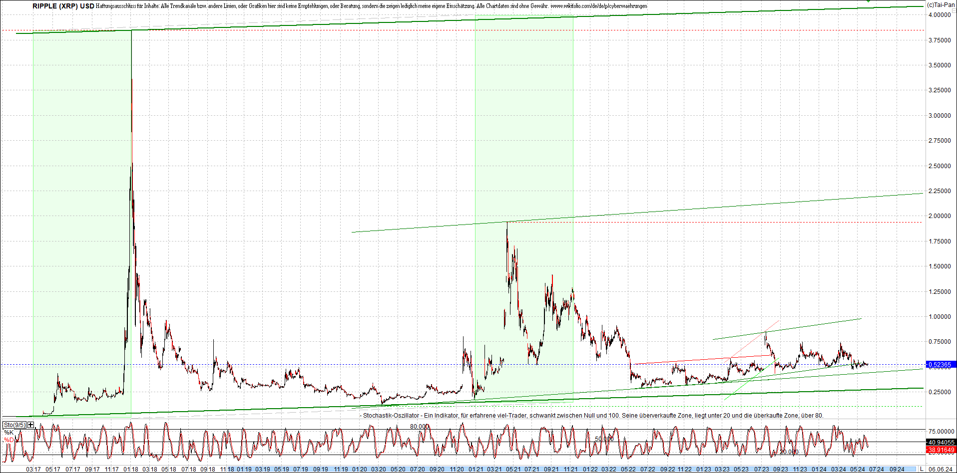 RIPPLE / XRP am Morgen. Oben Ripplezertifikat.