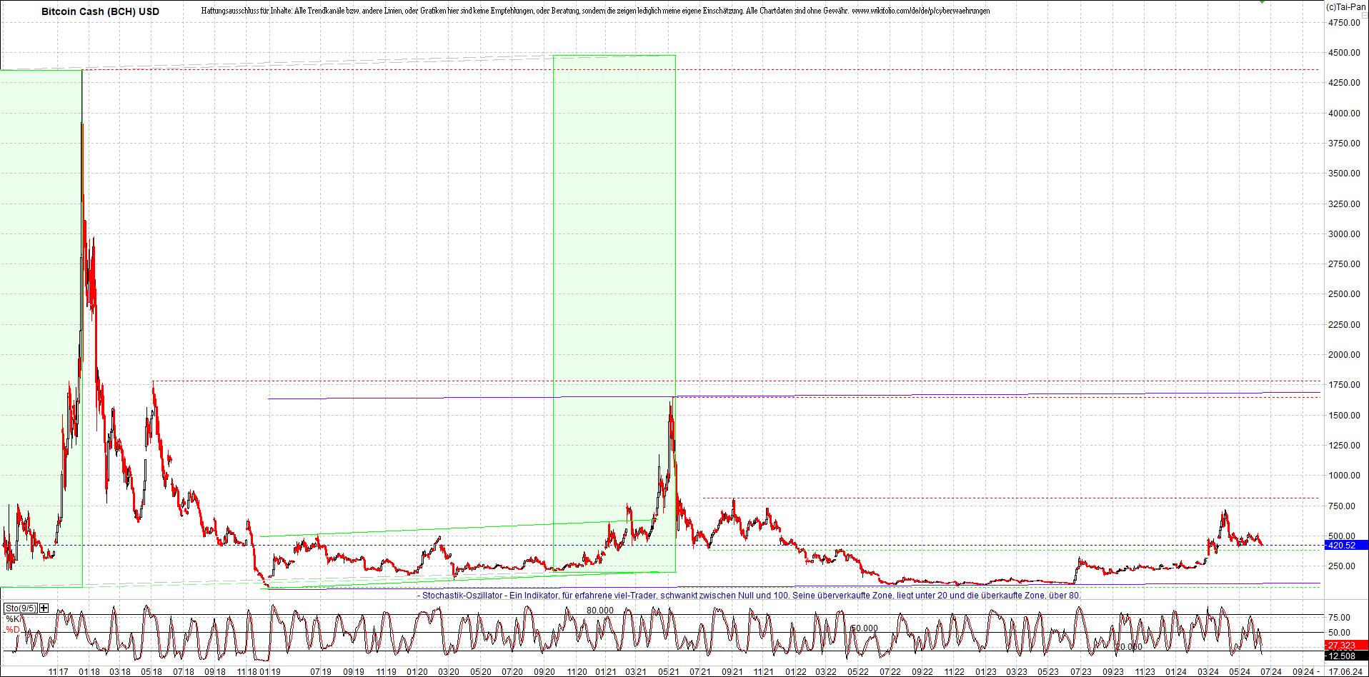 BITCOIN CASH (BCH) Chart. Oben das Zertifikat.