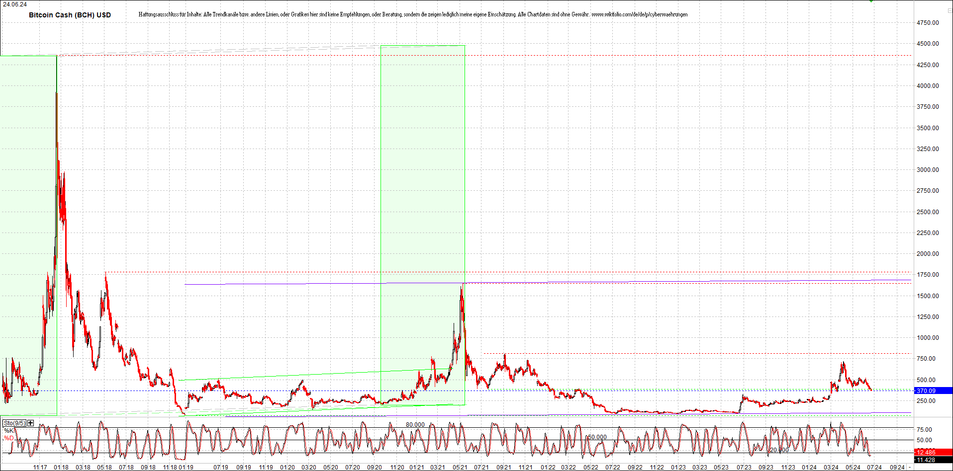 BITCOIN CASH (BCH) Chart. Oben das Zertifikat.