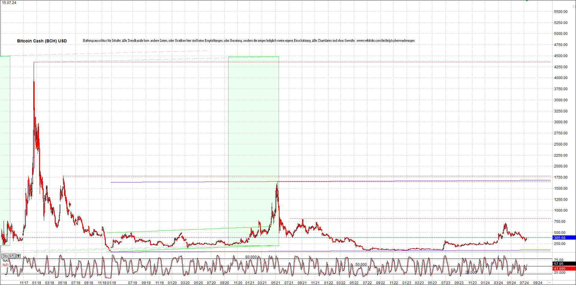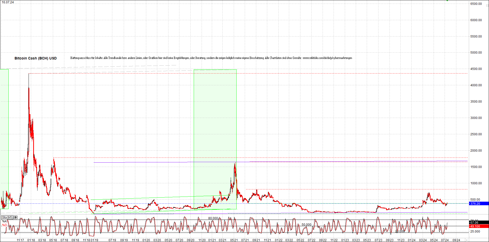 BITCOIN CASH (BCH) Chart. Oben das Zertifikat.