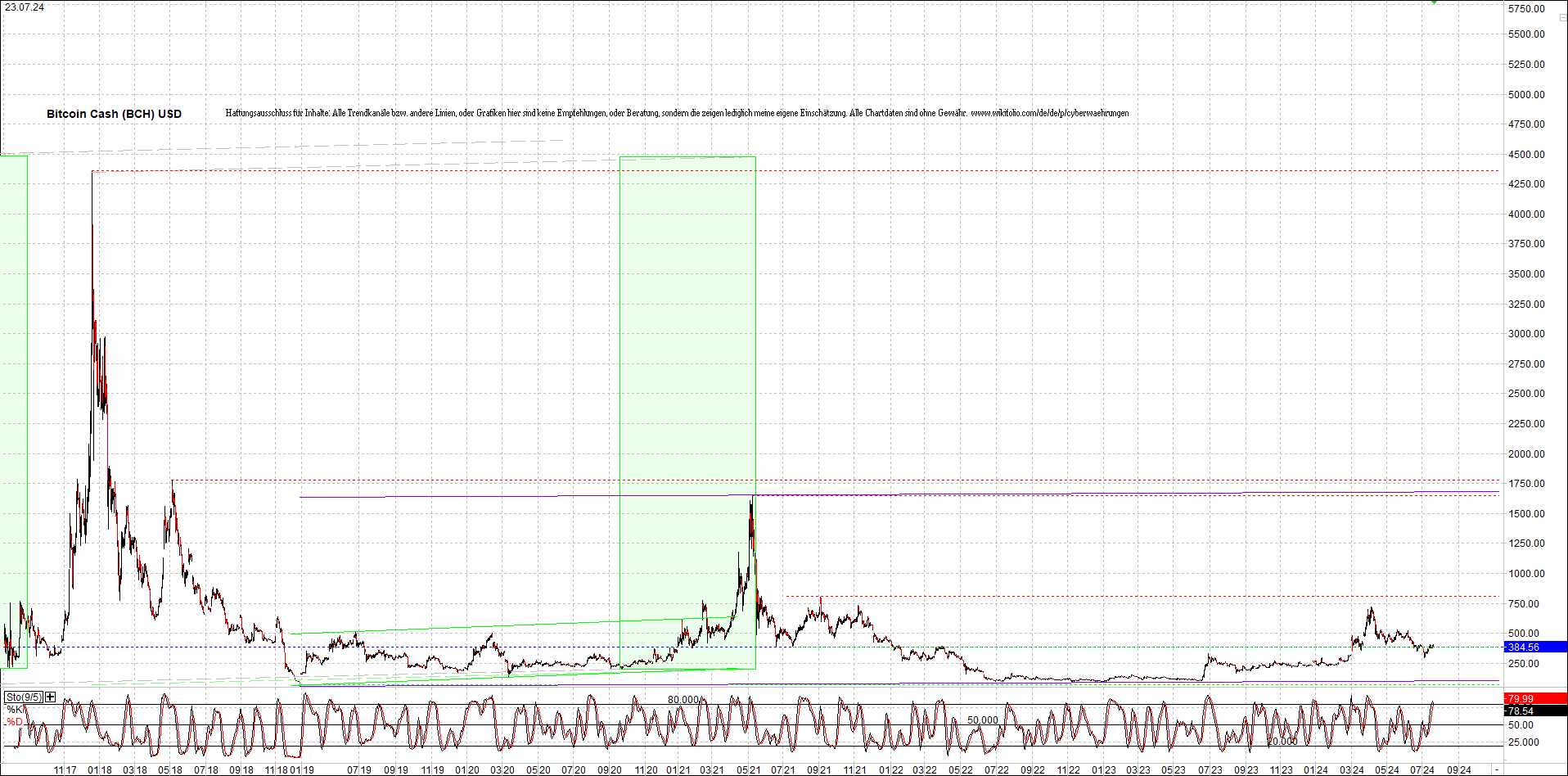 BITCOIN CASH (BCH) Chart. Oben das Zertifikat.