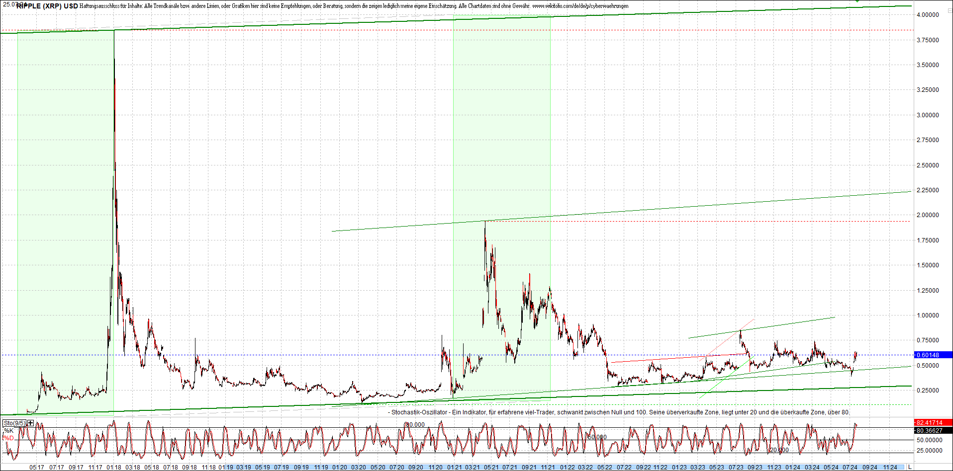 RIPPLE / XRP am Morgen. Oben Ripplezertifikat.