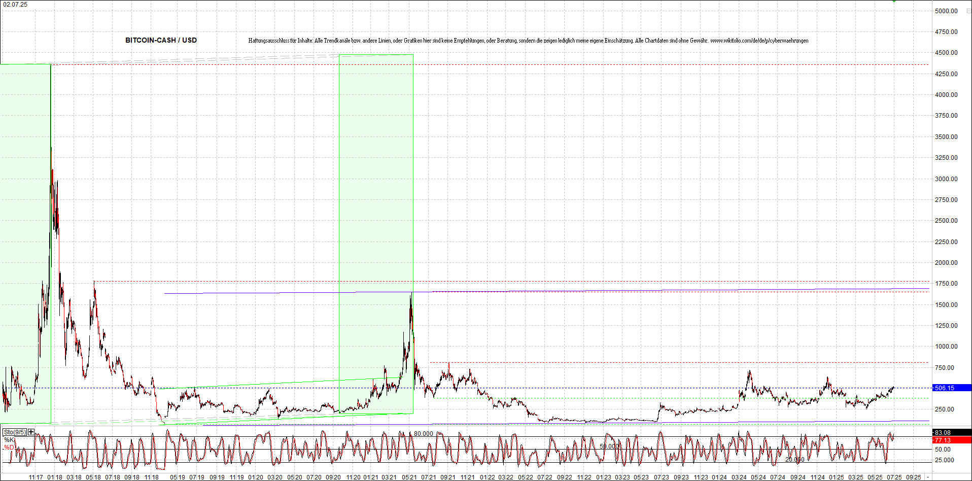 BITCOIN CASH (BCH) Chart. Oben das Zertifikat.