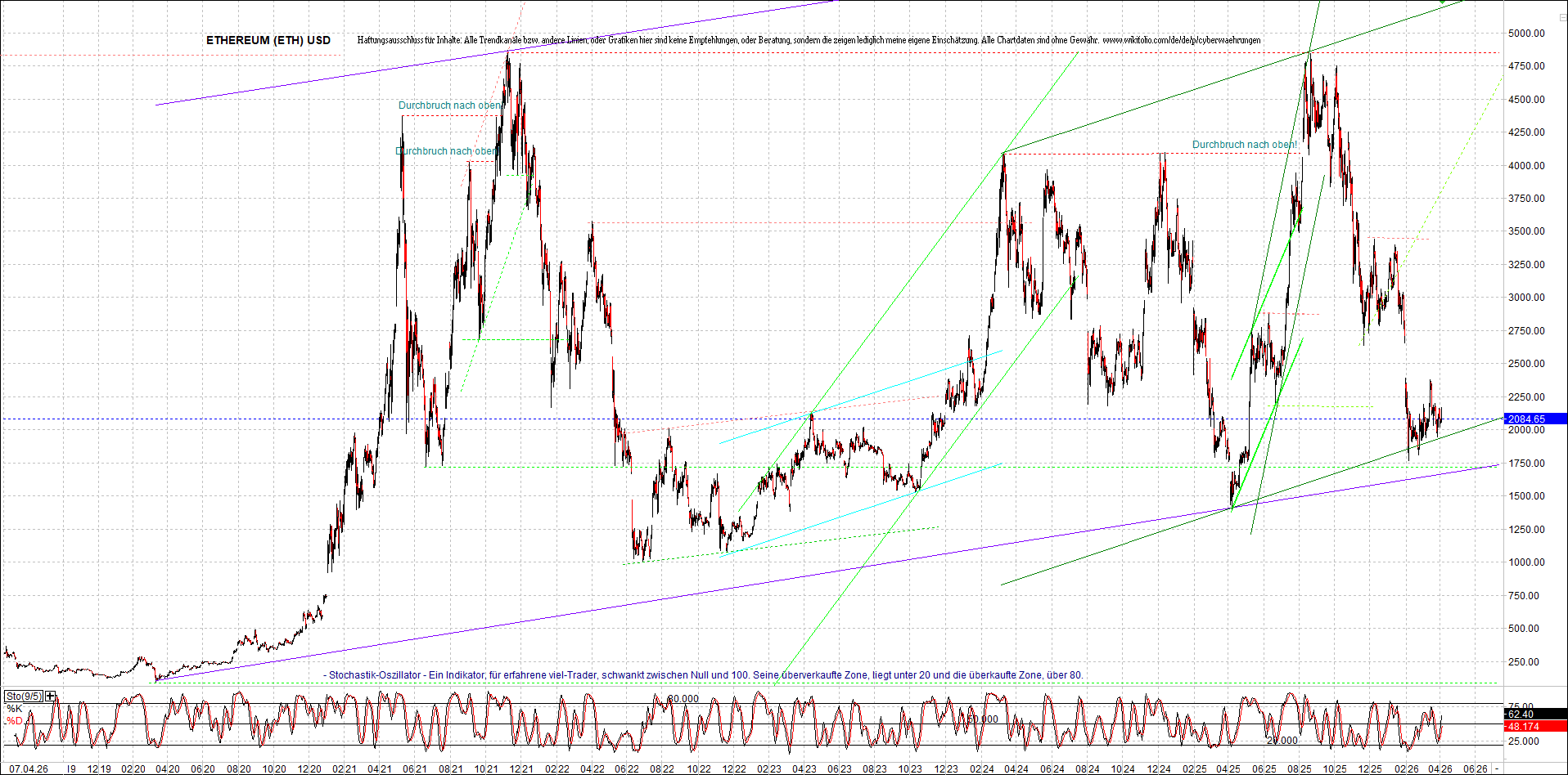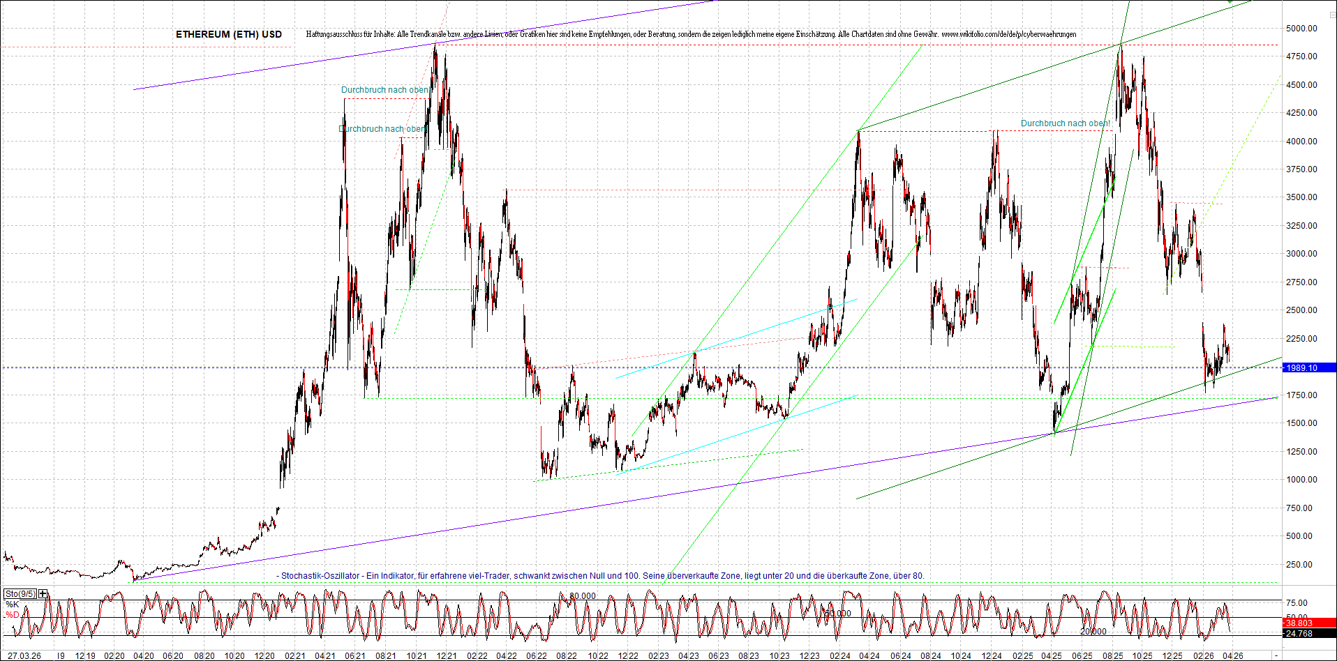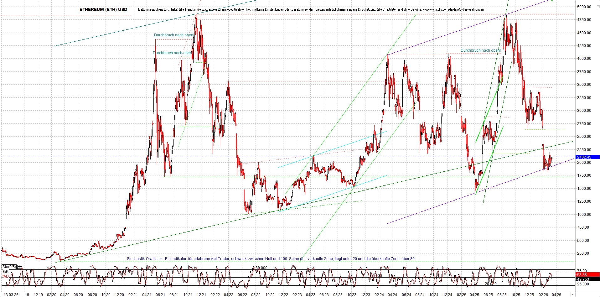 Mehr über die 7 wikifolio-Endlos-Zertifikate gibt es hier. Aber bitte da nicht erschrecken wegen den charts, weil die wikifolios sollten die original-performance so getreu nachbilden wie möglich, aber die charts bei wikifolio zeigen leider nur ein kleines Zeitfenster. Deswegen habe ich hier die entsprechenden langfristigen original-performance-charts reingestellt. Die kann ich auch gerne ab und zu aktualisieren. Die Trendkanäle bzw. andere Linien, oder Grafiken in diesem thread zeigen aber ausschließlich meine eigene Meinung und sind keine Empfehlungen, oder Beratung.