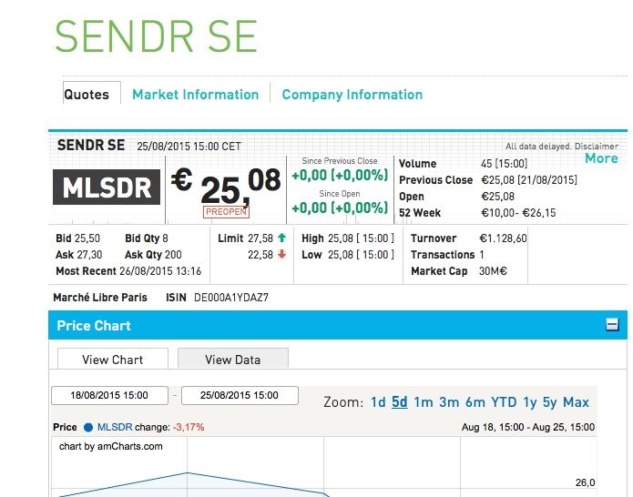 Nach Informationen der Bundesanstalt für Finanzdienstleistungsaufsicht (BaFin) werden derzeit die Aktien der SendR SE (ISIN: DE000A1YDAZ7, WKN A1YDAZ) durch E-Mail-Newsletter massiv zum Kauf empfohlen.