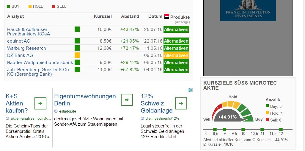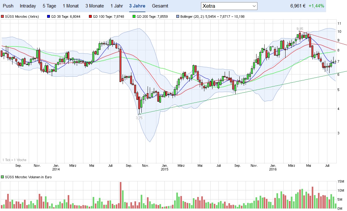 A1K023, Ticker-Symbol: SMHN, NASDAQ OTC-Symbol: SESMF) ist einer der weltweit führenden Hersteller von Anlagen- und Prozesslösungen für die Mikrostrukturierung in der Halbleiterindustrie und verwandten Märkten. In enger Zusammenarbeit mit Forschungsinstituten und Industriepartnern treibt SÜSS MicroTec die Entwicklung von neuen Technologien wie 3D Integration und Nanoimprint Lithographie sowie Schlüsselprozesse für die MEMS und LED Produktion voran. Weltweit sind mehr als 8.000 installierte Systeme von SÜSS MicroTec im Einsatz, unterstützt von einer globalen Infrastruktur für Applikationen und Service. Hauptsitz der SÜSS Gruppe ist in Garching bei München. (18.07.2016/ac/a/t)