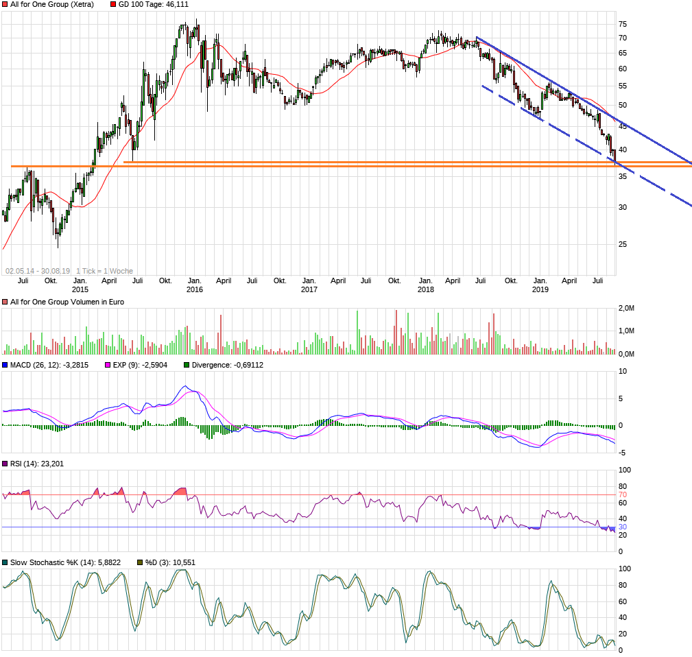 Was mich nur stört ist, dass man ja berücksichtigen muss, dass das Geschäftsjahr hier schon im September endet. Das heißt, wenige Monate vor Geschäftsjahresende muss man die Prognose um 3 Mio kürzen. Dann wirkt die moderate Veränderung der Prognose schon etwas wenig moderat. Weil man sich natürlich die Frage stellt, ob sich das aufs neue Geschäftsjahr 19/20 überträgt. Sprich, ist trotz der Bestätigung der Mittelfristziele 2022/23 nun erstmal mit einem Jahr der Stagnation zu rechnen?