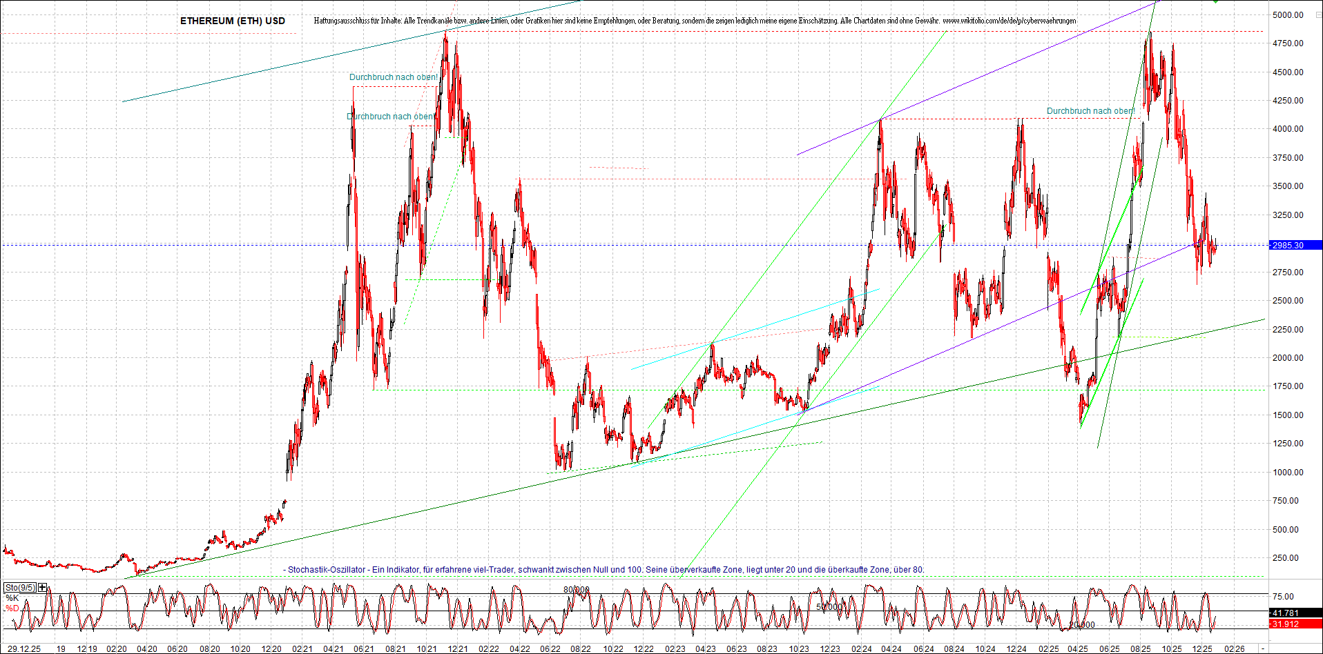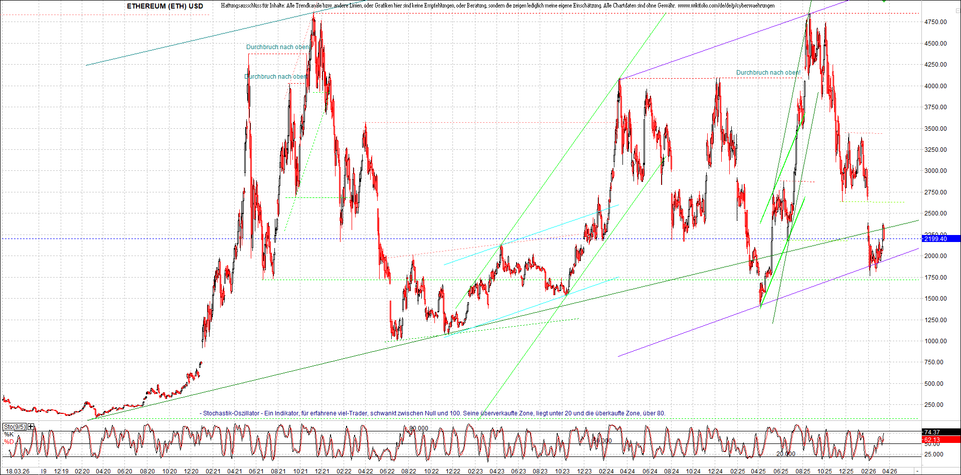 Aber bitte da nicht erschrecken, weil die Charts bei wikifolio, zeigen leider nur ein viel kleineres Zeitfenster, als die nachgebildeten Kryptowährungen. Deswegen habe ich hier einige langfristigen original-Performance-Charts reingestellt. Die kann ich auch gerne ab und zu aktualisieren. Die Charttechnik in diesem Thread, ist aber keine Empfehlungen, oder Beratung, sondern die zeigt ausschließlich meine eigene Meinung.