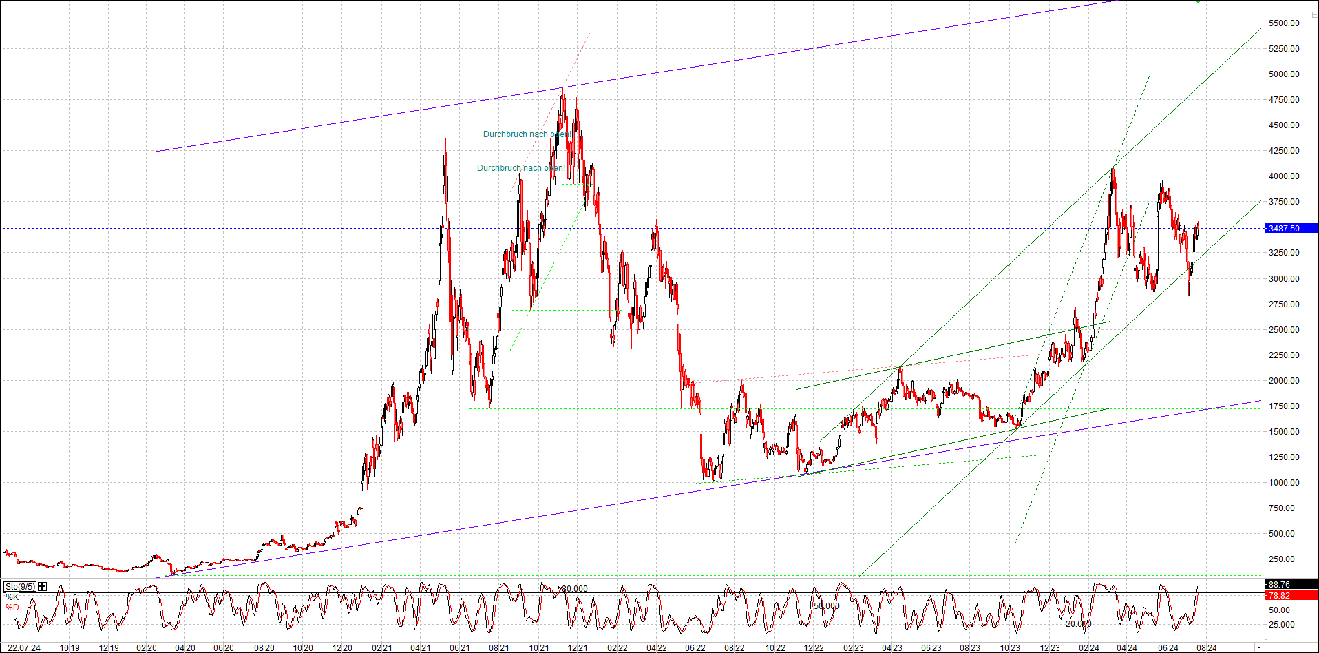 BITCOIN (BTC) Chart heute, sehr langfristig.