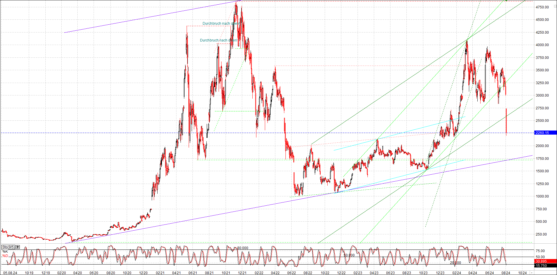 BITCOIN (BTC) Chart heute, sehr langfristig.