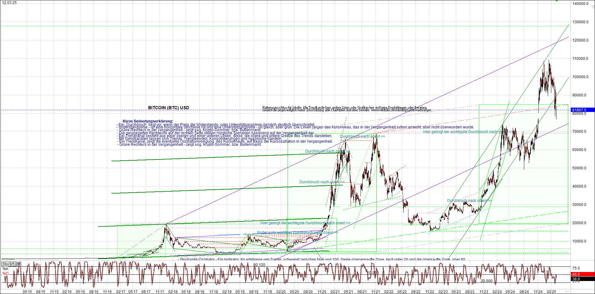 BITCOIN (BTC) Chart heute, sehr langfristig.