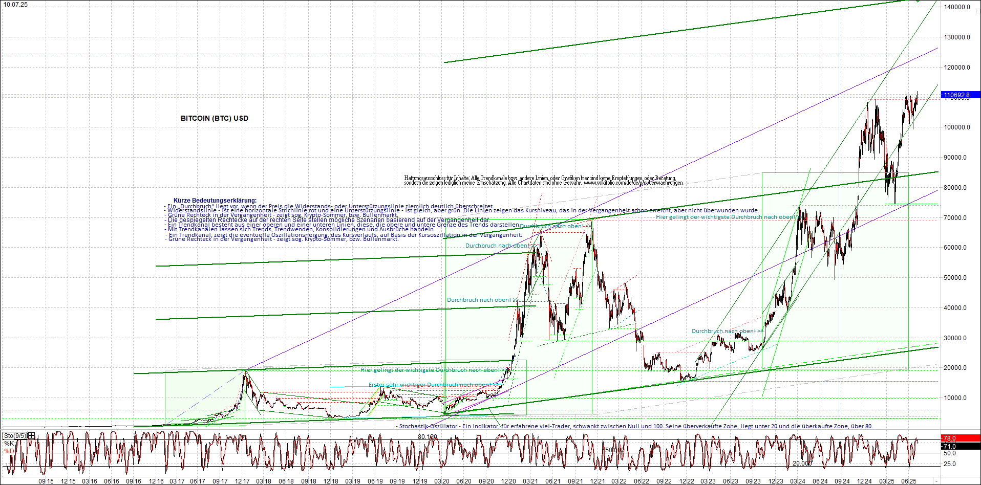BITCOIN (BTC) Chart heute, sehr langfristig.