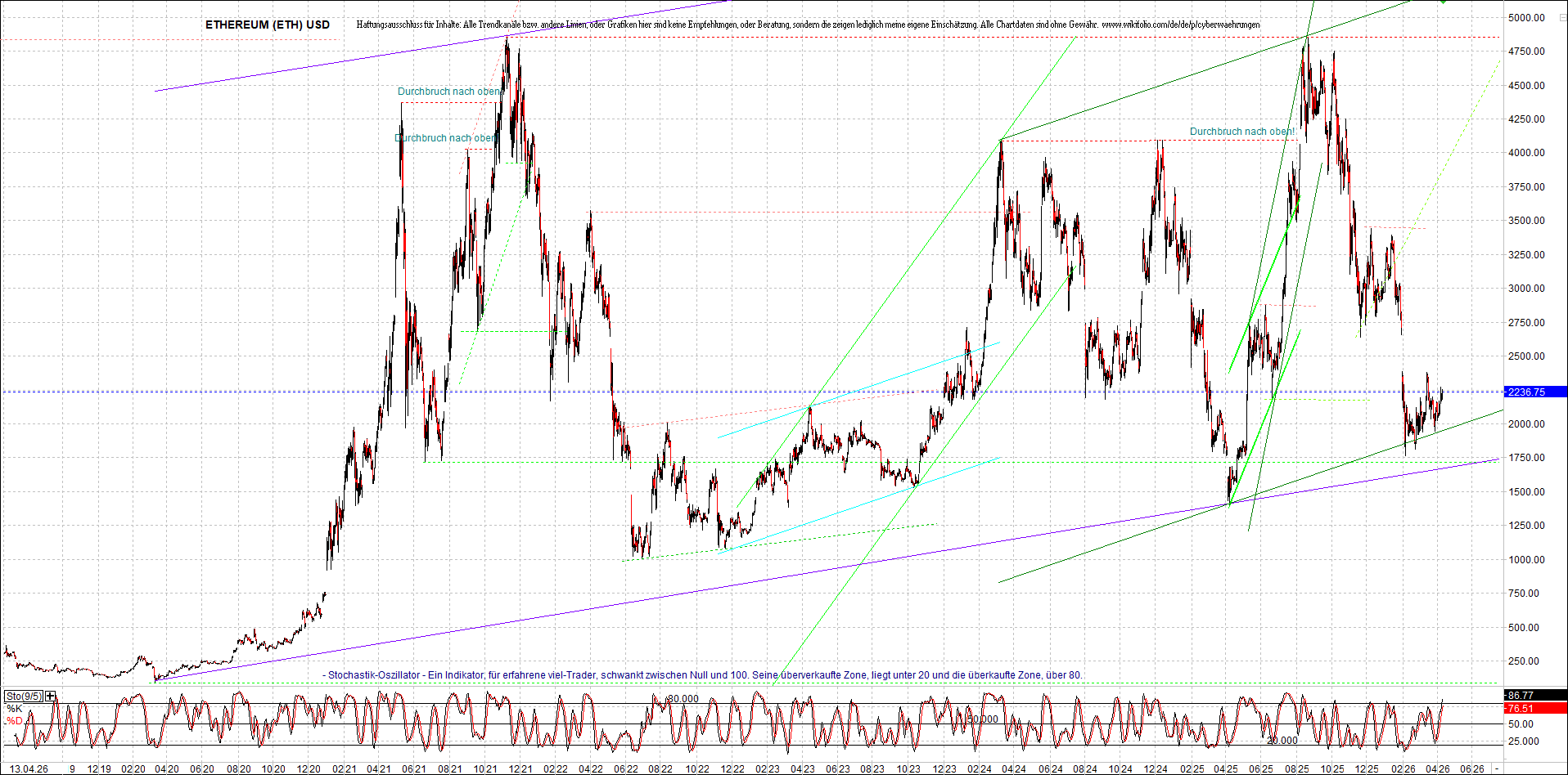 Aber bitte da nicht erschrecken, weil die Charts bei wikifolio, zeigen leider nur ein viel kleineres Zeitfenster, als die nachgebildeten Kryptowährungen. Deswegen habe ich hier einige langfristigen original-Performance-Charts reingestellt. Die kann ich auch gerne ab und zu aktualisieren. Die Charttechnik in diesem Thread, ist aber keine Empfehlungen, oder Beratung, sondern die zeigt ausschließlich meine eigene Meinung.