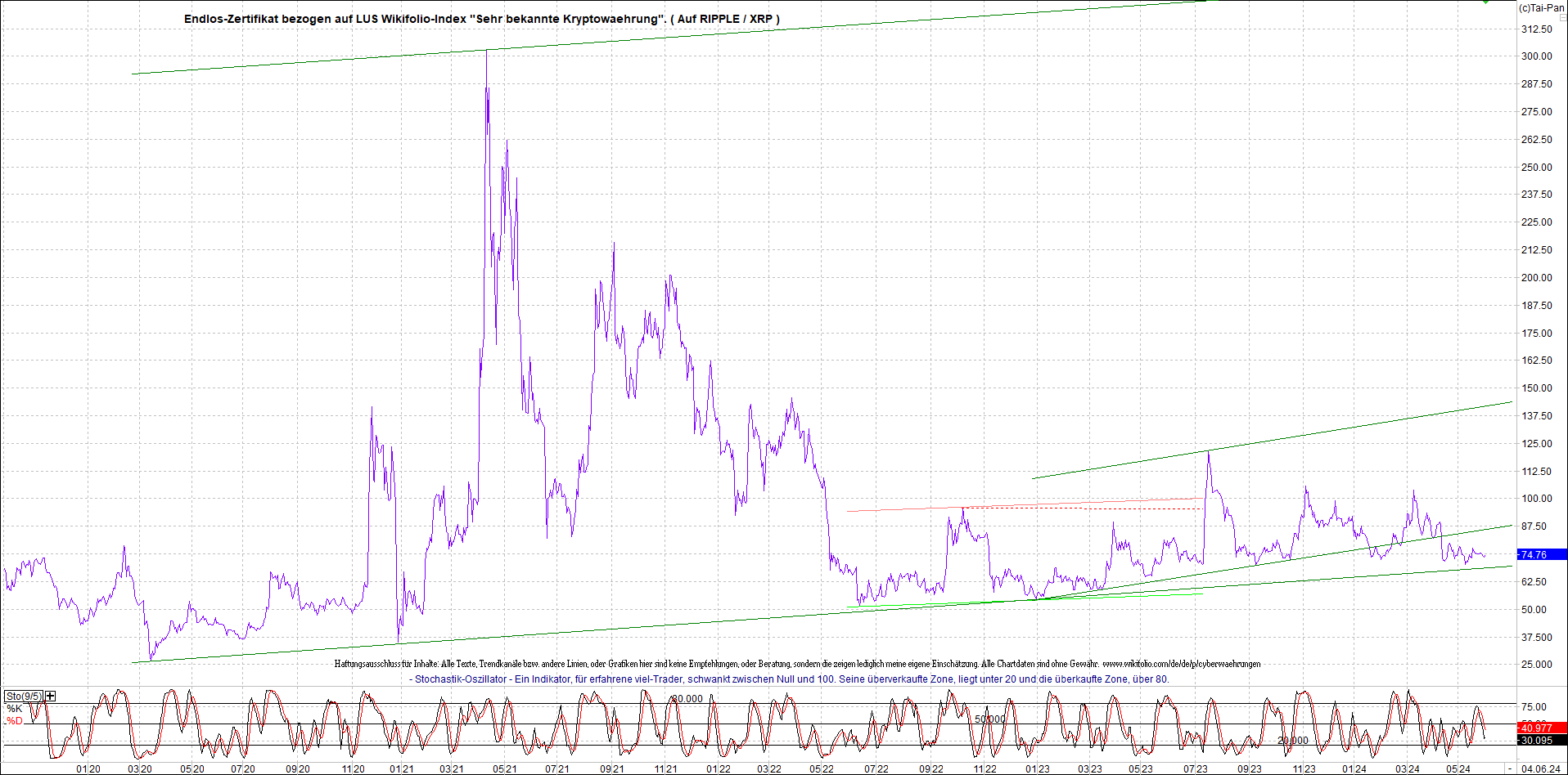 RIPPLE (XRP) am Morgen. Oben Ripplezertifikat