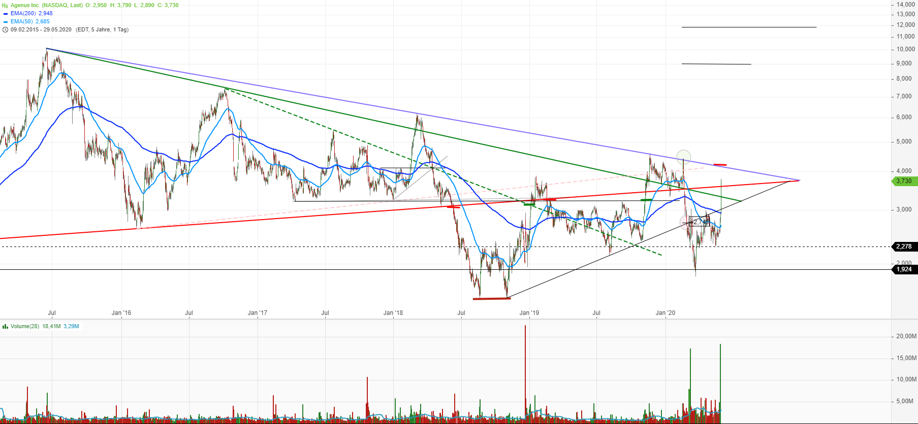 Agenus is a clinical-stage immuno-oncology company focused on the discovery and development of therapies that engage the body's immune system to fight cancer. The Company's vision is to expand the patient populations benefiting from cancer immunotherapy by pursuing combination approaches that leverage a broad repertoire of antibody therapeutics, proprietary cancer vaccine platforms, and adoptive cell therapies (through its AgenTus Therapeutics subsidiary). The Company is equipped with a suite of antibody discovery platforms and a state-of-the-art GMP manufacturing facility with the capacity to support early phase clinical programs. Agenus is headquartered in Lexington, MA. For more information, please visit www.agenusbio.com and our twitter handle @agenus_bio. Information that may be important to investors will be routinely posted on our website and twitter.
