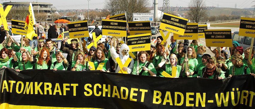 ..60.000 Menschen protestierten nach Angaben der Veranstalter am Samstag in Baden-Württemberg gegen Atomkraft und die von der Regierung beschlossene Verlängerung der Laufzeiten der Kernkraftwerke.