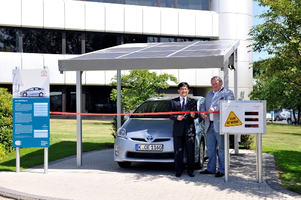 Bekanntlich kommt der Strom aus der Steckdose. Damit diese Energie für Elektro- oder auch Hybridfahrzeuge wie den Toyota Prius Plug-In möglichst CO2-neutral produziert werden kann, haben Frank Asbeck, Vorstandsvorsitzender der SolarWorld AG, und Toshiaki Yasuda, Präsident der Toyota Deutschland GmbH den von der SolarWorld AG entwickelten SunCarport auf dem Toyota-Gelände in Köln-Marsdorf eingeweiht. Dort wird ein Prius Plug-In aus dem europäischen Feldversuch seine Energie beziehen. Frank Asbeck ist seit der Einführung des aktuellen Modells Prius-Botschafter und begrüßte die Vertiefung der Kooperation: „Solarstrom ist das Superbleifrei von morgen. Unser SunCarport produziert sauberen Solarstrom für zuhause oder das moderne Fahrzeug. Getankt mit sauberer Sonnenenergie kann der Prius Plug-In sofort losfahren.“ Toshiaki Yasuda sagte anlässlich der Einweihung: „Toyota arbeitet kontinuierlich daran, in allen Bereichen auf Nachhaltigkeit zu achten, sei es bei Mobilitätskonzepten, der Fertigung oder auch im Handel. Der SunCarport ist ein gutes Beispiel dafür, wie die Energieerzeugung für die Mobilität der Zukunft aussehen kann.“
