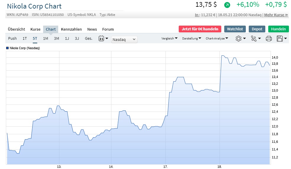 Um alle drei Kursmeilensteine zu erreichen, müsste Nikola seine anfängliche Marktkapitalisierung von ca. 4 Mrd. $ um ca. 18 Mrd. $ erhöhen.