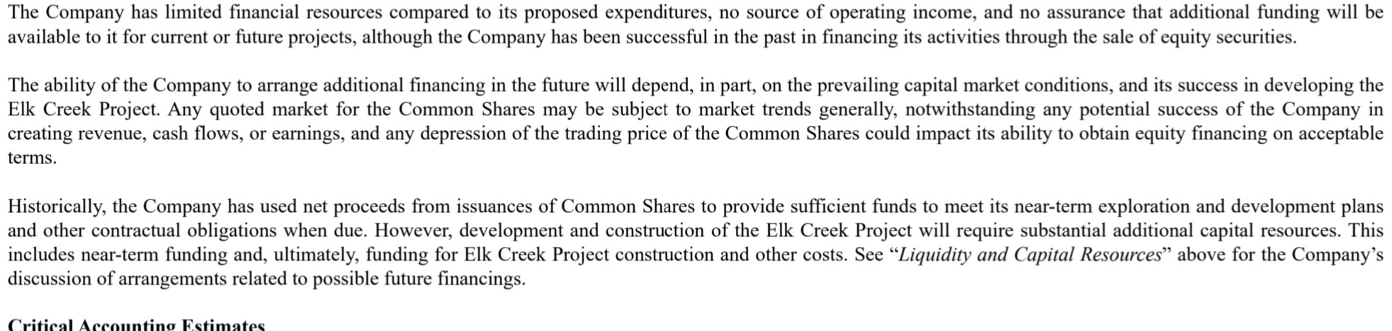 Somit hat Niocorp jetzt insgesamt Kapital von 605900 USD eingesammelt, begründet auf 242500 ausgegebenen Aktien mit einem Druchschnitsspreis von 2,49 USD.