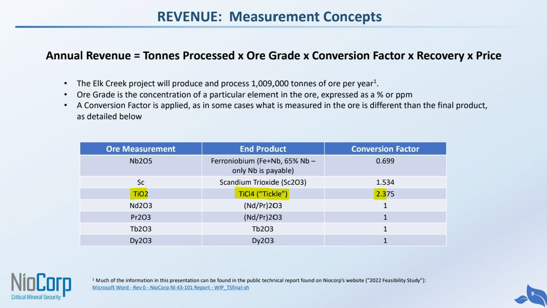 Im besagten Kommentar habe ich beschrieben wie Niocorp für sein Elk Creek Projekt " Derisking" betreibt. Es wird entsprechend also eine Verschiebung der Finanzdaten geben und das in Bezug uaf die Preisgebung der einzelnen Mineralien, die gefördert werden sollen: