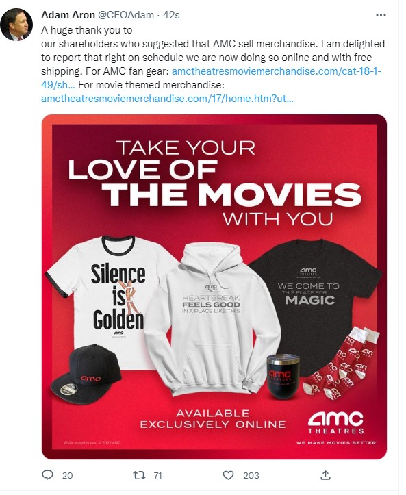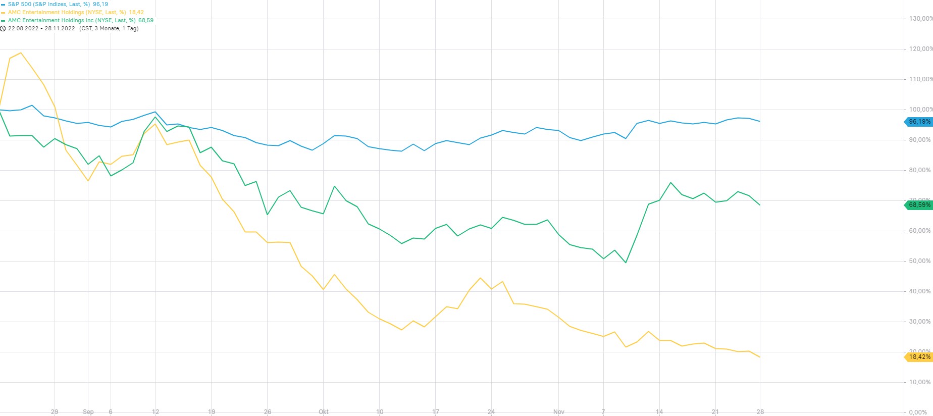 Drüben jetzt vermehrt Verschwörungstheorien gepaart mit Durchhalteparolen. Klar, angesichts des Kursverlaufs, was soll man da anderes sagen, wenn man nicht eingestehen will, dass AMC einfach nicht mehr alleine aus den Schulden rauskommt bzw. die Pleite kommt, wenn alle Mittel verbrannt sind? Der verzweifelte Versuch, über die abenteuerliche APE-Aktion an Kapital zu kommen, ging natürlich in die Hose angesichts der fundamentalen Daten (=Geld verbrennen, egal, wie gut das Kino läuft).