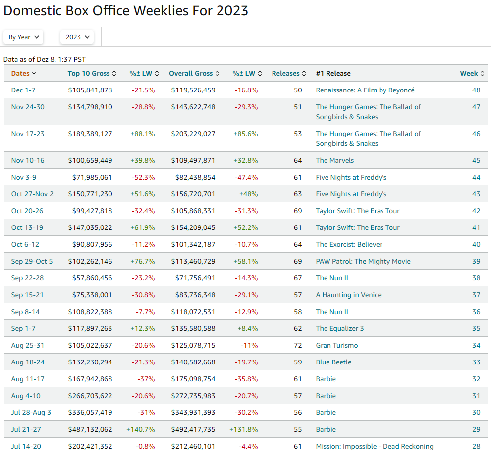 We extend our sincerest appreciation to Taylor Swift and Beyoncé Knowles-Carter, and we are optimistic that we can continue to collaborate with these and other globally renowned musical artists in 2024 and beyond. "Aron concluded, "These results are encouraging. They make us more confident than ever about the long-term relevance and prospects for moviegoing in the many years ahead. Having said that, the short-term impacts of the Writer's and Actor's strikes will cause additional and needless challenges for AMC in 2024. Without taking sides as to who is to blame and how the labor challenges should be resolved, we strongly encourage all the parties involved to come to the