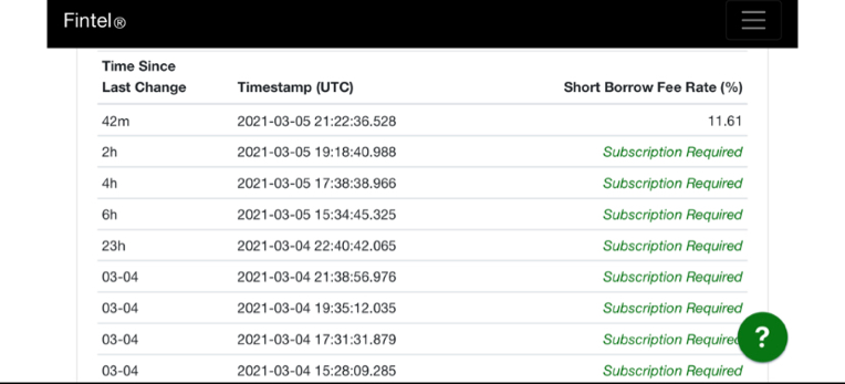Appropo Boden, ich glaub mit 8$ haben wir derzeit wieder einen neuen erhöhten Boden so wie damals mit 5,50$ ausgebildet und hey, was wollen wir mehr verlangen, unterm Strich haben wir diese Woche, im Gegensatz zu den ganzen Hype- und Technologieaktien, ein kleines Plus geschafft und die Paramater stehen weiter Gut für uns bzw. haben sich sogar deutlich verbessert, sie z. B. die Borrow Fee Rate die mittlerweile schon an der 12% kratzt. Letzte Woche war diese noch bei ca. 4% - 8%.