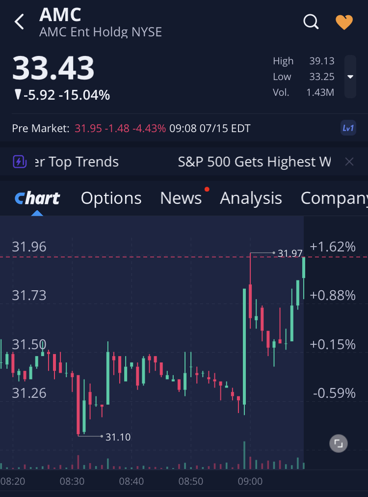 Also ich sage dir, da wir ja alle wissen, wer den Preis macht und warum er den gerade so (übrigens auch bei GME und BB) verlaufen lässt, wie er verläuft, dass er sich nicht damit zufrieden geben wird, dass wir uns noch über der $30 Marke befinden.