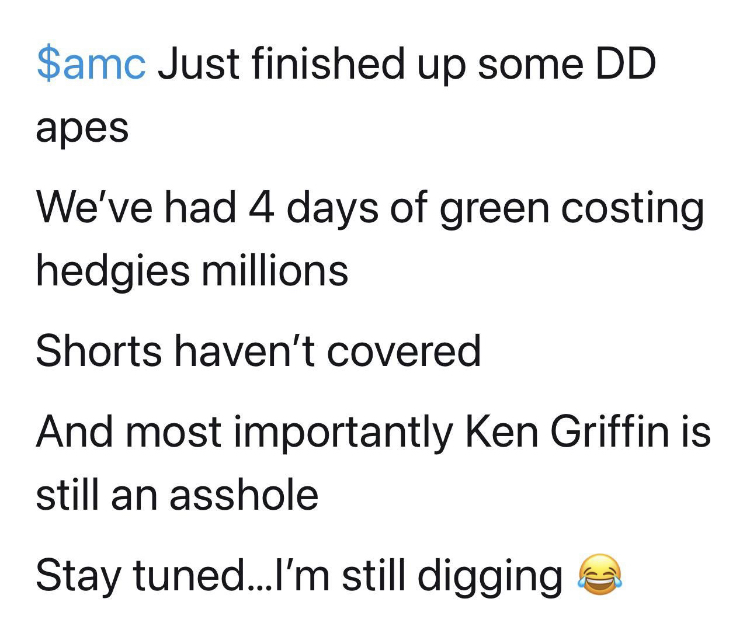 Oh alright now im gonna talk. We have the HIGHEST PERFORMING HEDGE FUND OF ALL TIME tripling their position in $amc. And we are dumb money but they arent? Gtfoh #amc