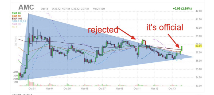 AMC Entertainment Holdings Inc (NYSE: AMC) bereitet sich mit Thrills and Chills auf Halloween vor – eine Kinoveranstaltung, bei der Horrorfans nur 5 US-Dollar pro Ticket zahlen, um einen vorausgewählten Film anzusehen. Es gibt nur einen Haken: Das Publikum weiß vor dem Ticketkauf nicht, welchen Film es sehen wird. Im Gegensatz zu den Teilnehmern der Veranstaltung können technische Trader das Diagramm von AMC verwenden, um eine detaillierte Roadmap zu erstellen, die bei der Planung ihrer Trades hilft. Ebenso können die Affen, die die Aktie „halten“, die Analyse nutzen, um zu entscheiden, wann der sicherste Zeitpunkt ist, ihre Positionen aufzustocken.
