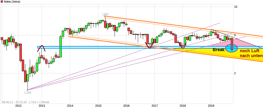 Solange dann auch noch schwache Politiker wie Mutti Merkel nicht schnallen was Huawei&Co noch an "hidden agenda" mitführen und gezielt staatlich "hochgepampert" wurden, wird Nokia und Ericsson im rauhen Wind stehen und Huawei sich schlapplachen. Man kann ja über Trump denken was man will, aber er ist der einzige Politiker auf der Welt, der gegenüber dem Regime aus Peking nicht ständig den entwürdigenden Bückling macht, sondern klare Kante zeigt. Glaubt einer in Peking hätte irgendeiner noch Achtung/Respekt vor windelweichen EU-Nasen? Glaubt einer in 20 Jahren wird in Europa noch Nokia in der heutigen Form existieren? Wie groß wird die technologische Macht Chinas dann sein? Das ist eben das Problem. Hier geht es nicht nur um das Jahr 2019, 2020, 2021. Das Problem ist, der fehlende Glaube an eine gewinnreiche große Zukunft über diese Zeit hinaus.