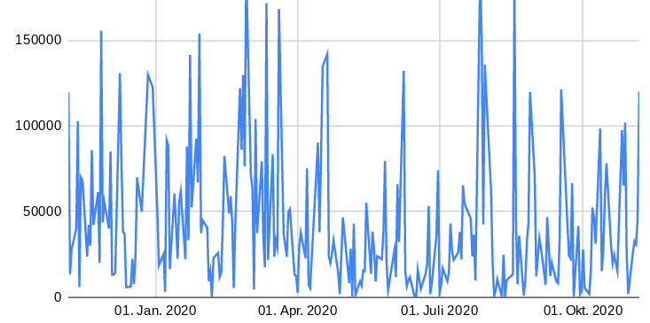das inkonsistente handelsvolumen der Noratis-aktie (grafik unten) macht dem aktienkurs (noch) zu schaffen (geringe marktliquidität /marktbreite /markttiefe; datenquelle: de.finance.yahoo.com/quote/NUVA.DE/history?p=NUVA.DE)