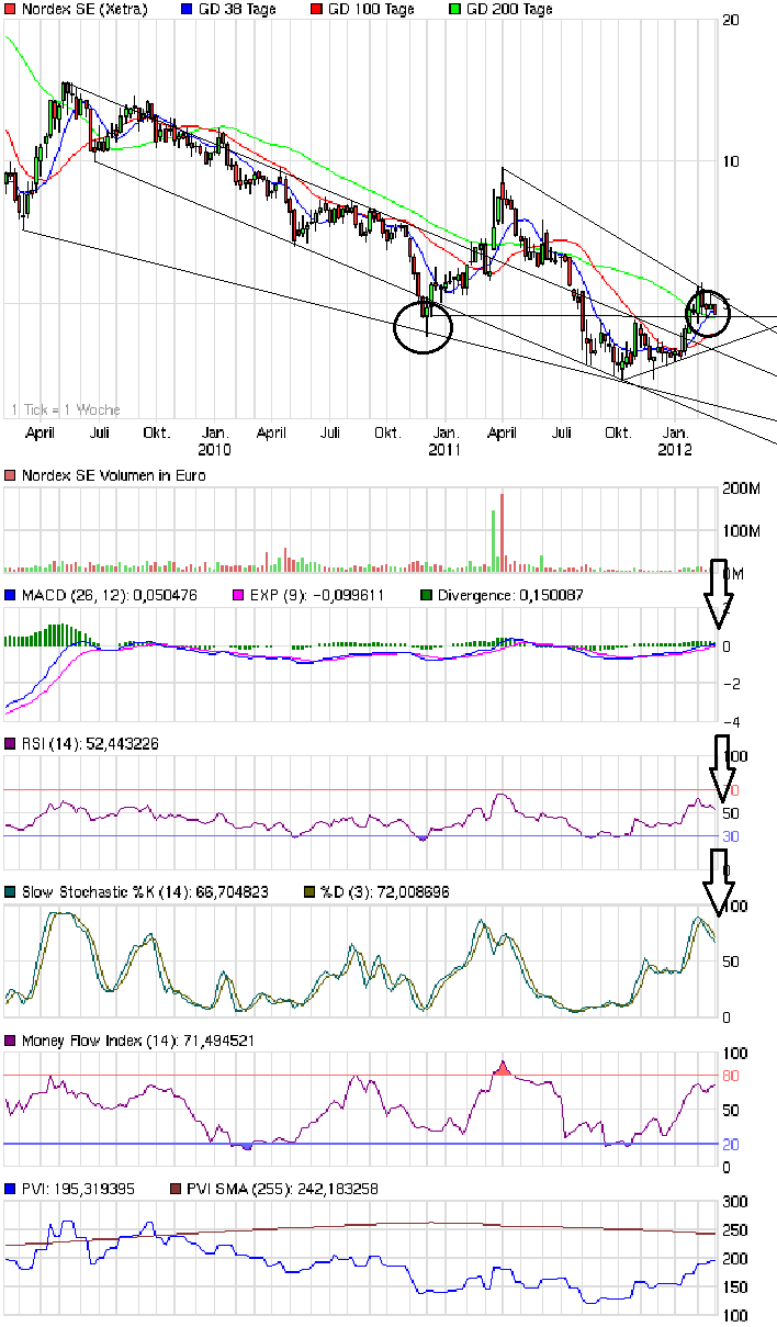 Unverändert problematisch bleibt die Preisentwicklung: In den letzten zwei Jahren sind die Preise für Windkraftanlagen um rund 20 Prozent zurückgegangen. Dies zehrt an den Margen. In 2011 dürfte daher ein Verlust angefallen sein. Dies ist aber nichts Neues. Spannend dürfte es werden, wenn Nordex einen Ausblick gibt. Fällt dieser gut aus, kann es durchaus zu einem Kurssprung kommen. www.deraktionaer.de/aktien-deutschland/...rlust---17794599.htm