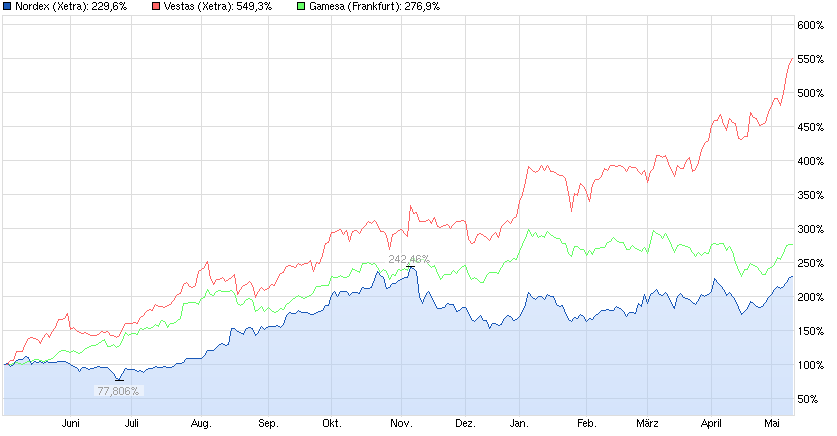 Auf Anlegerseite wird man sich sicherlich nicht beschweren, wenn die Quartalsergebnisse gut ausfallen sollten und Prognosenahebungen folgen würden. Wenn Nordex dann auch noch wie im Vorjahr mit einer Reihe von Meldungen über neue Aufträge eine Euphorie entfachen kann, sollte die Nordex-Aktie, wie von den Jungs bei der Deutschen vorhergesagt, nach vielen Jahren die Marke von 15 Euro wieder knacken können.....