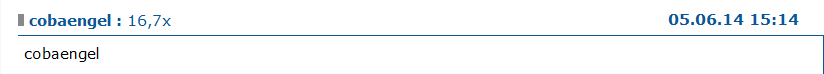 | Wertung | Antworten | Thema | Verfasser | letzter Verfasser | letzter Beitrag | |