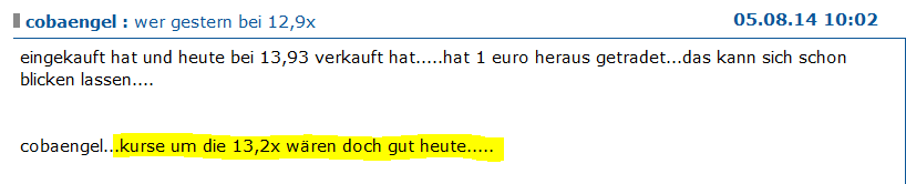 immerhin von €10 auf €17, runter auf €12.50 und nun sk €12.85...das innerhalb weniger wochen...das ist schon extrem, vorallem bei diesen, fundamental recht guten unternehmenswerten...