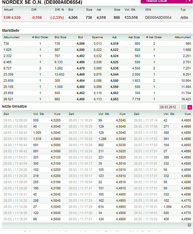 "...Zu Diskussionen ganz anderer Art führte übrigens der Bau der vier Windkraftanlagen bei Oberscheld. Nicht bei der ansässigen Bürgerschaft. Sondern in der Community von Wallstreet Online. Dort streitet sich ein Investor der Aktien bei Nordex hat mit einem anderen Leser darüber, wieso die Investition in Nordex sich am Ende rechne, auch wenn vor Fukushima die Nordexaktie von 40 auf 3 Euro gefallen war...."